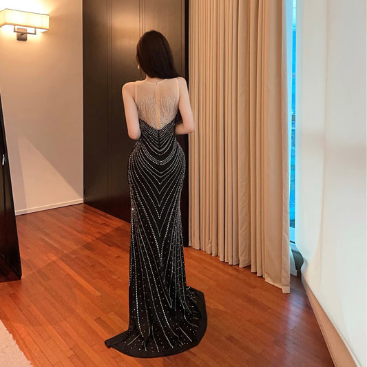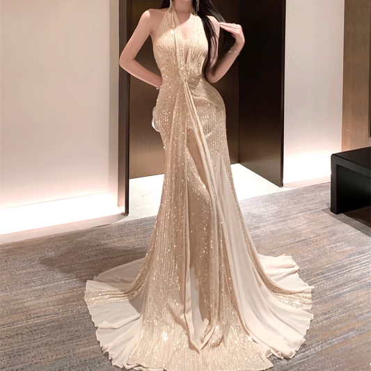 Hanging Neck Sequin Banquet Fishtail Long Dress