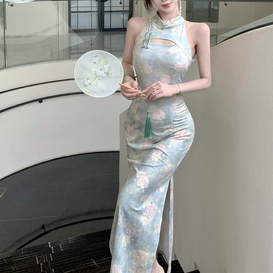 New Chinese Style Sleeveless Halter Neck Suspender Dress