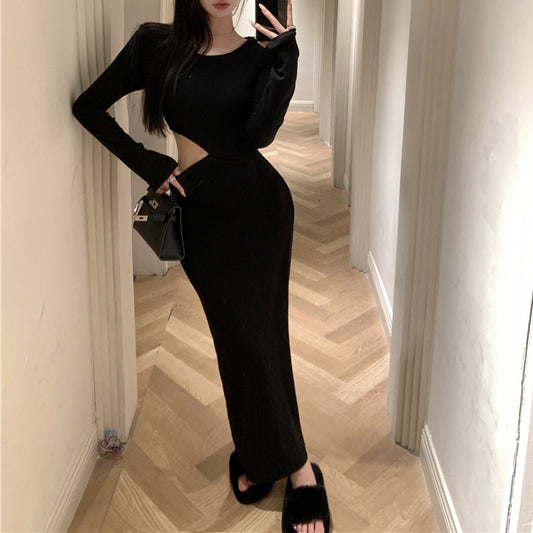 Bodycon Black Hip-Hugging Long-Sleeved Dress