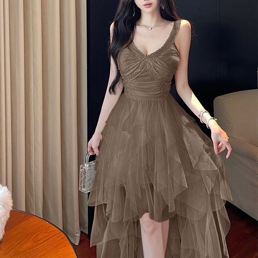Sweet And Elegant Irregular Chiffon Suspender Dress