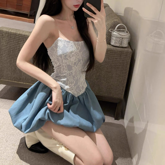 Backless Lace Trimmed Sweet A-Line Strapless Dress