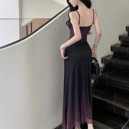 French Sexy Contrast Color Sleeveless Retro Suspender Dress