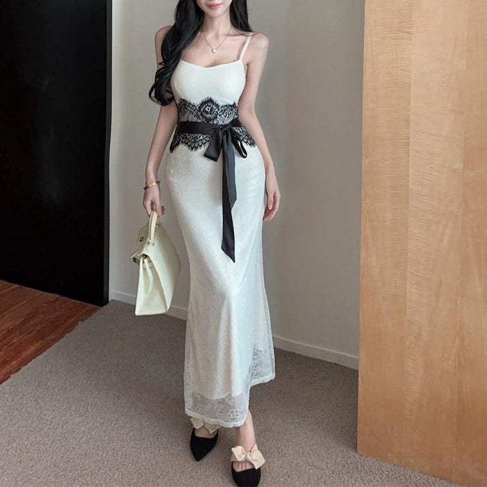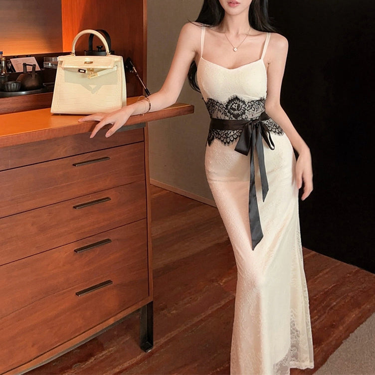 Color-Blocked Lace Slip Dress