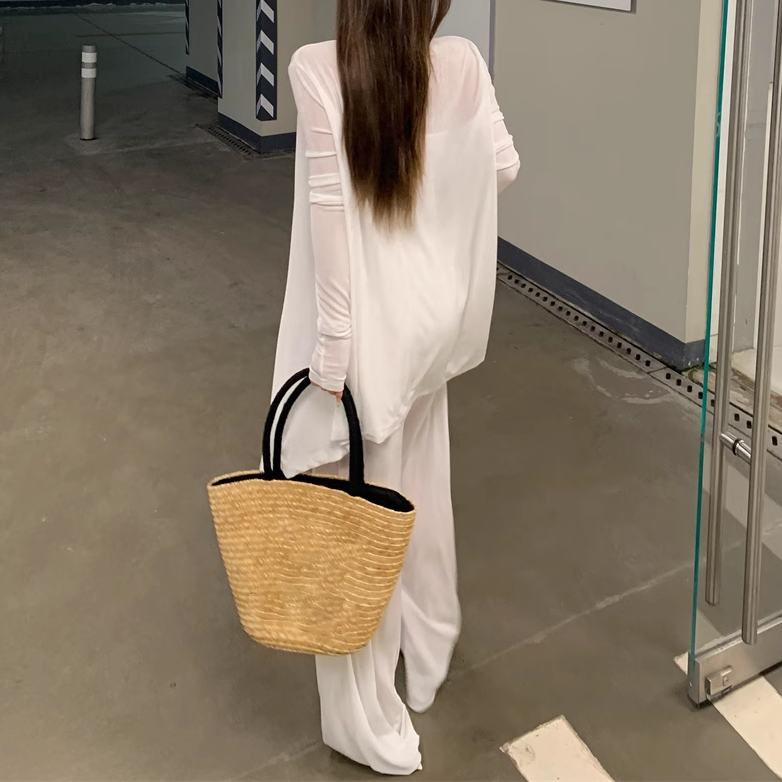 Color: White Vest + White Pants (No Cardigan), Black Vest + Black Pants (No Cardigan), White Vest + White Pants + White Cardigan, Black Vest + Black Pants + Black Cardigan, White Cardigan (No Vest + Pants), Black Cardigan (No Vest + Pants)