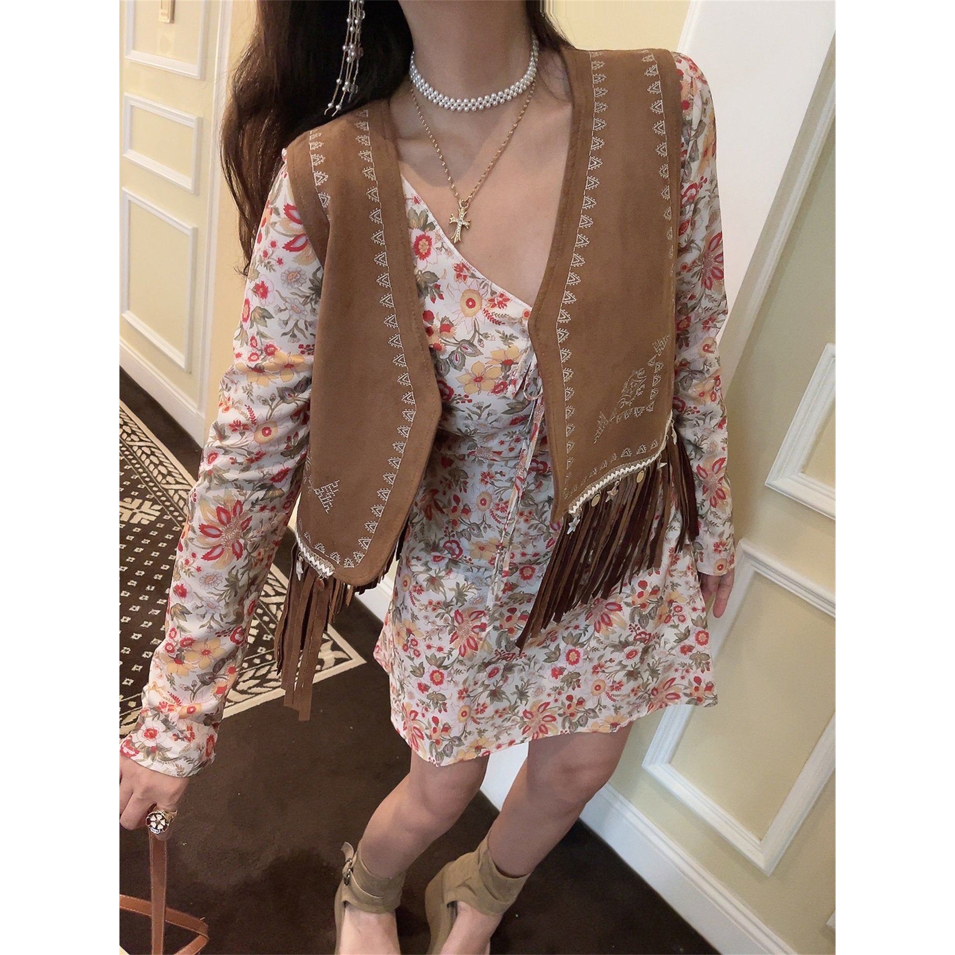 French Retro V-Neck Fitted Waist Floral Dress