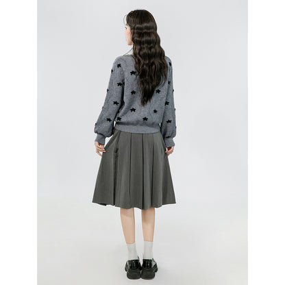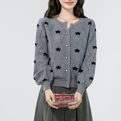 Gray Embroidered Five-Pointed Star Knitted Cardigan