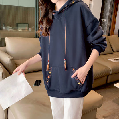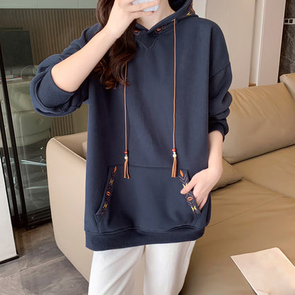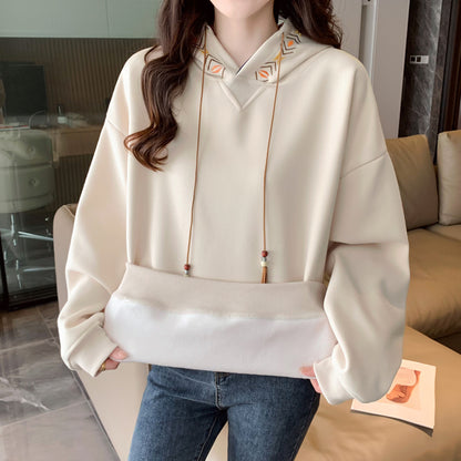 Hooded Silver Fox Fleece Long Sleeve Loose Sweatshirt