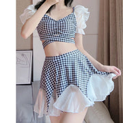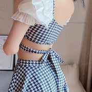 Houndstooth Short Sleeve Sexy Split Swimsuit