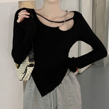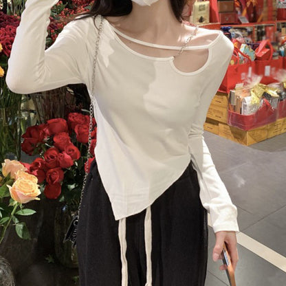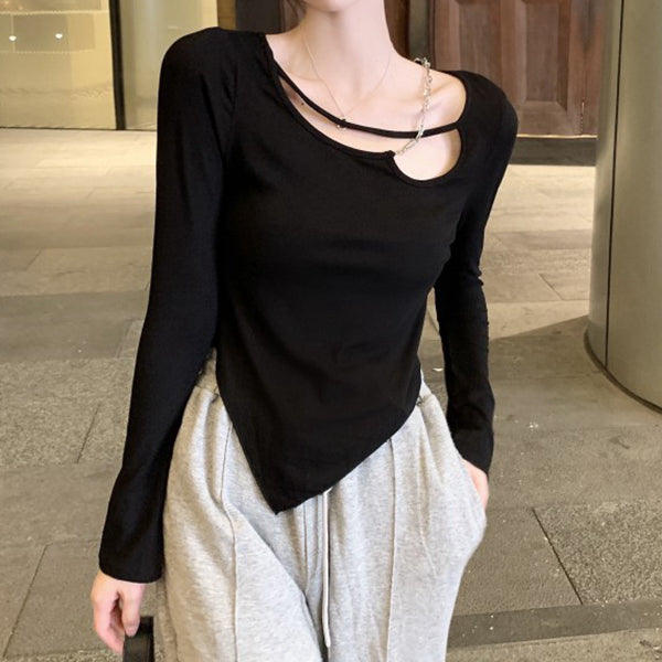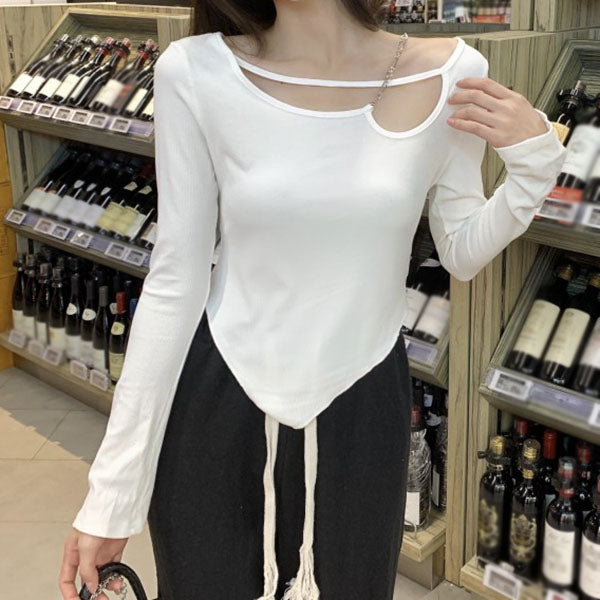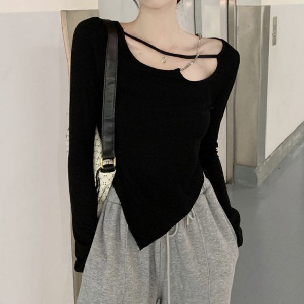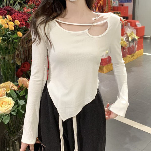 Long Sleeve Chain Irregular T-Shirt Top