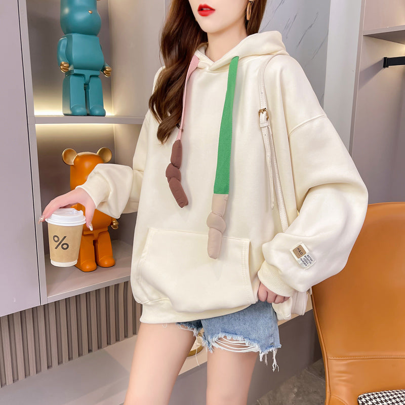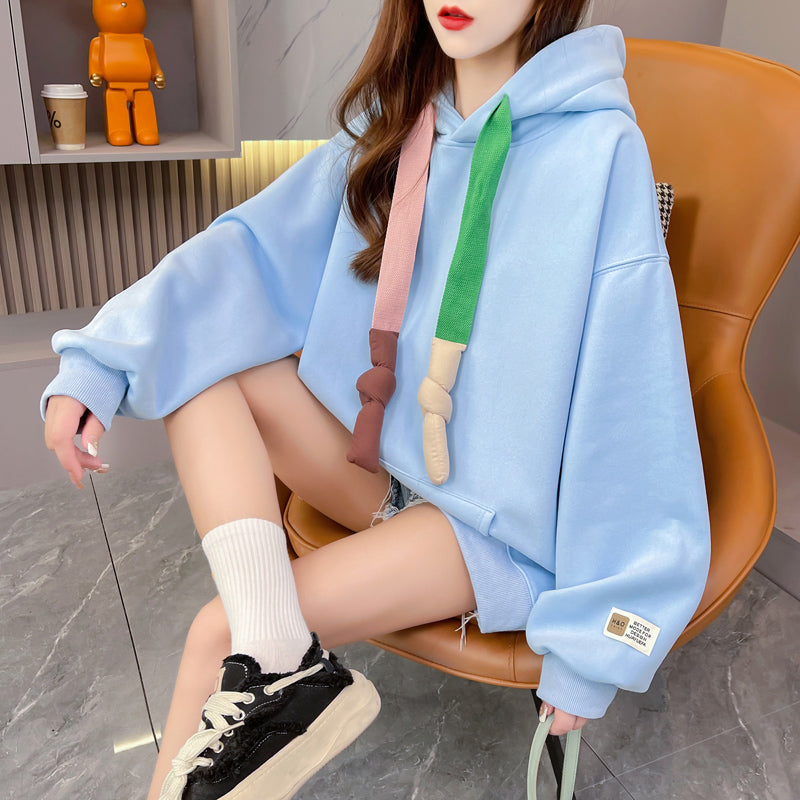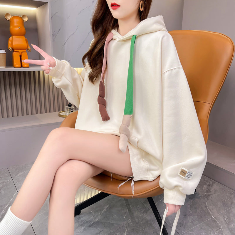 Cotton Compound Silver Fox Velvet Back Collar Plus Size Plus Velvet Thick Sweatshirt