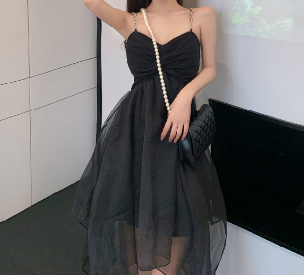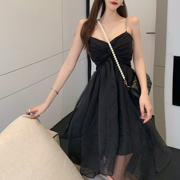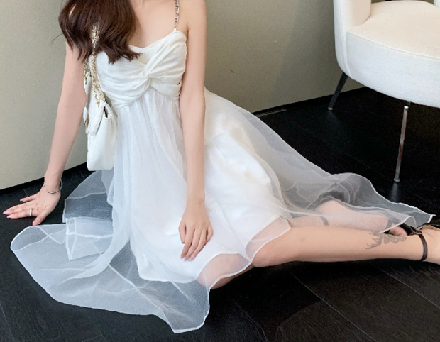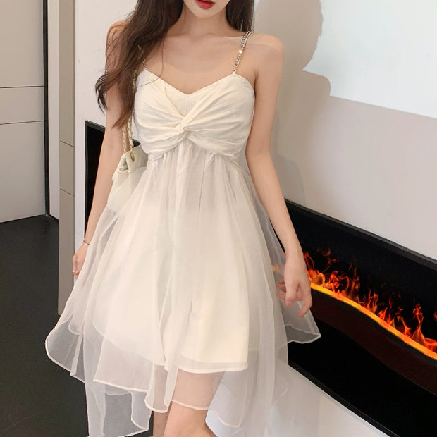 Summer French Super Fairy Sling Design Mesh Fairy Sweet Cocktail Dress