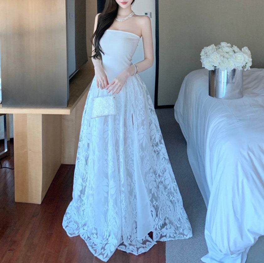 Sweet And Sexy Jacquard High-Waisted Loose-Fitting Flared Dress For Birthday Parties