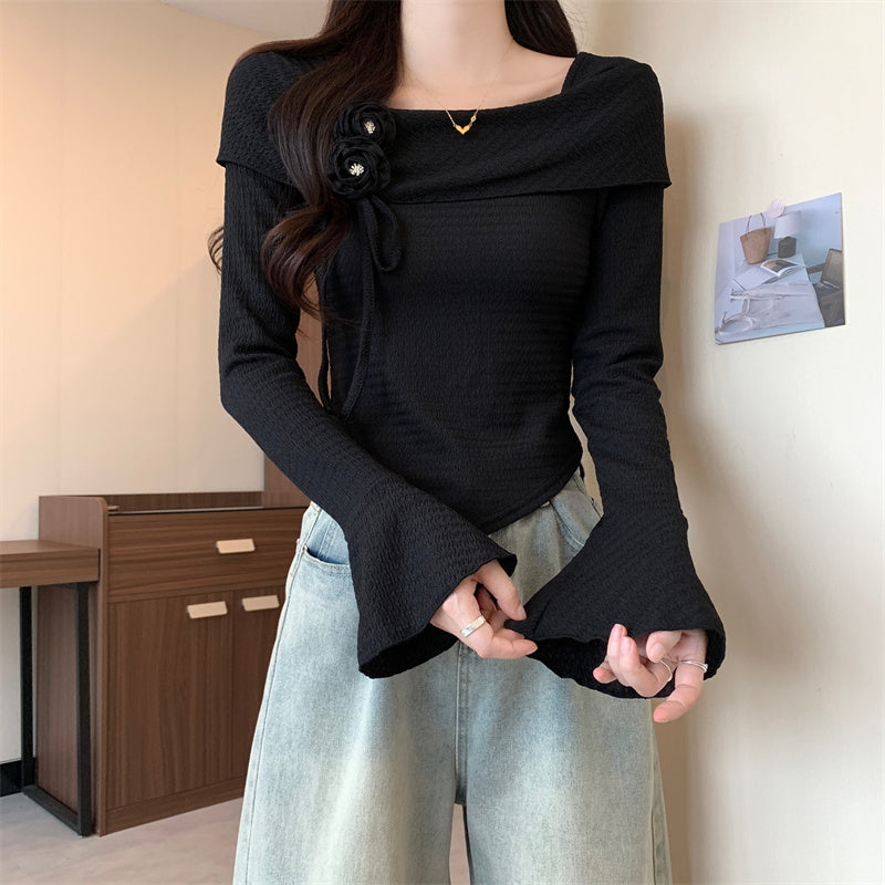T-Shirt Irregular Three-Dimensional Flower Trumpet Long-Sleeved Top