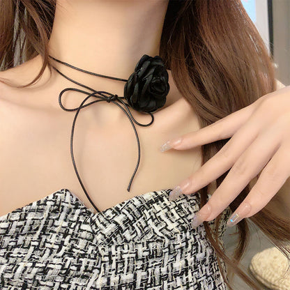 Three-Dimensional Camellia Tie Necklace