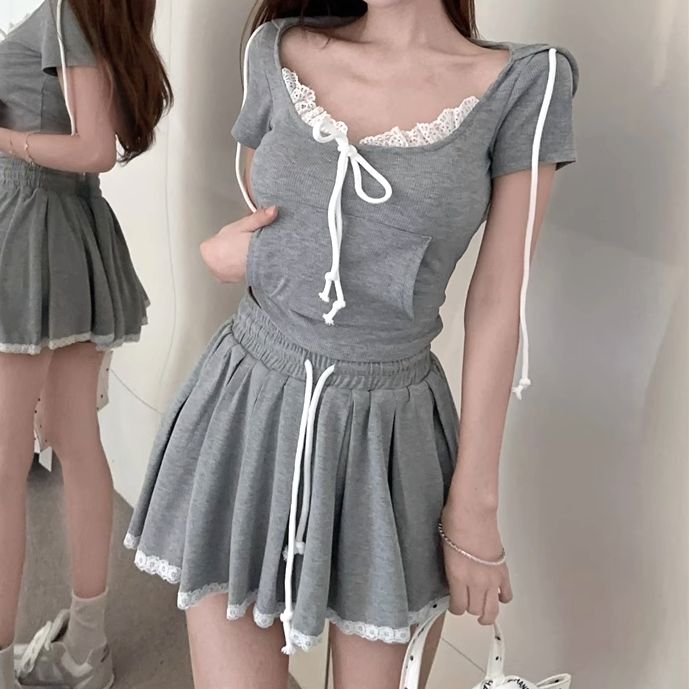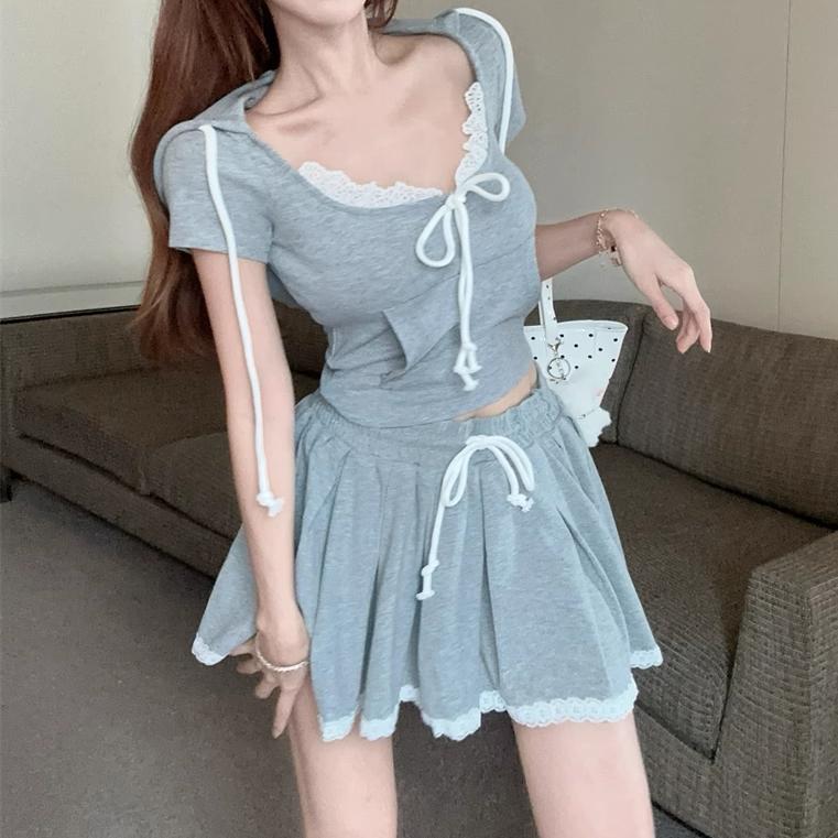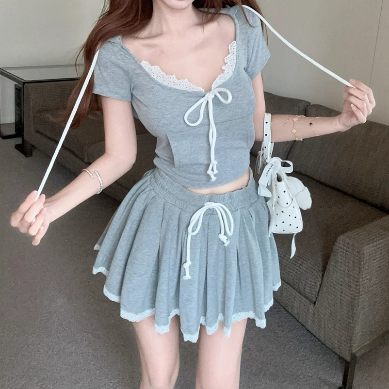 Color: Gray Top + Gray Skirt, Gray Top (No Skirt), Gray Skirt (No Top)