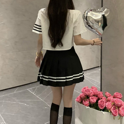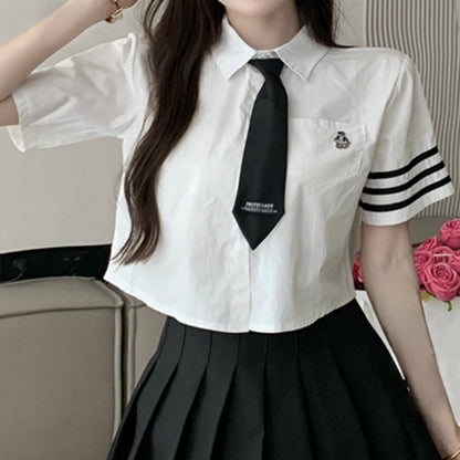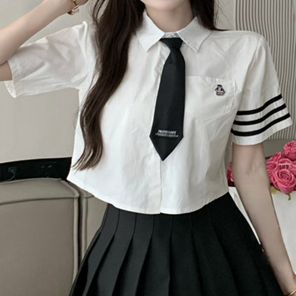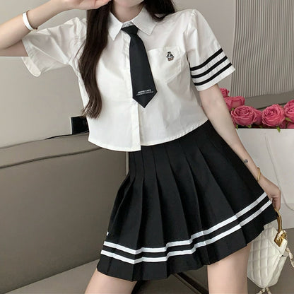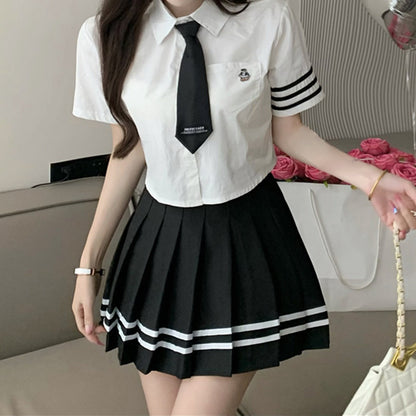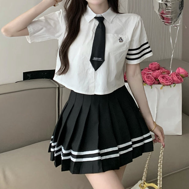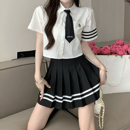 Color: Shirt + Tie + Striped Pleated Skirt, Shirt + Tie (No Skirt), Striped Pleated Skirt (No Shirt + Tie)