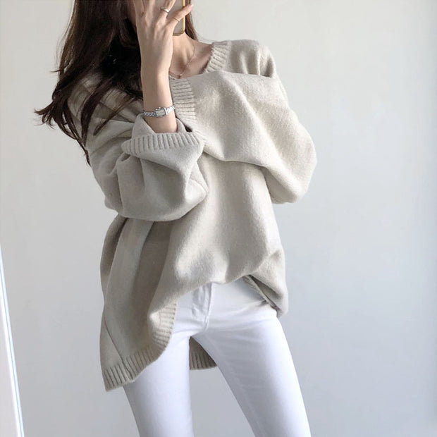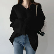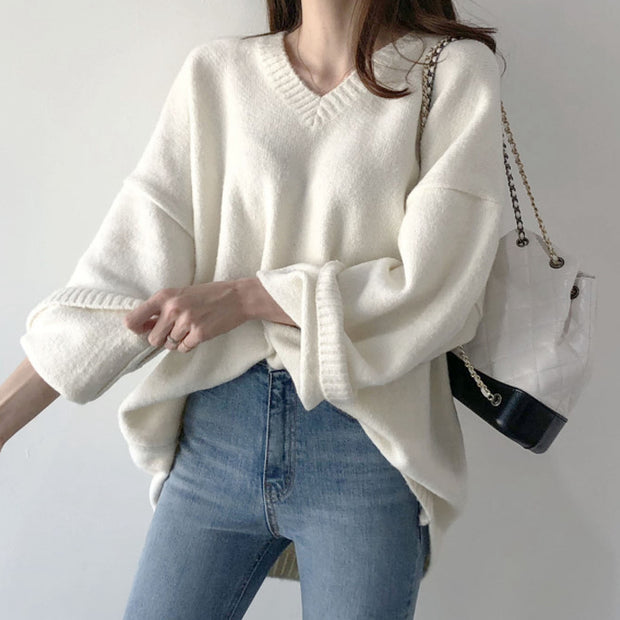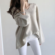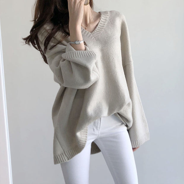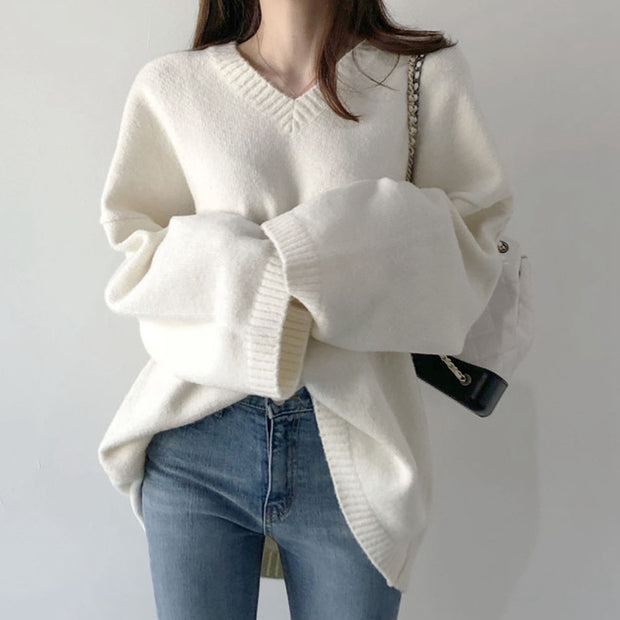 V-Neck Knitted Long-Sleeved Straight Sweater