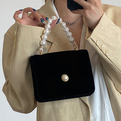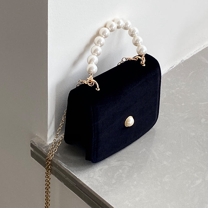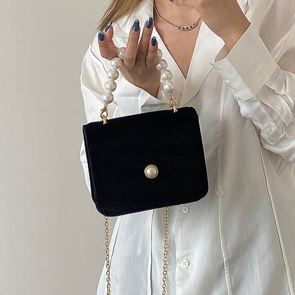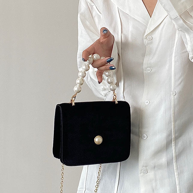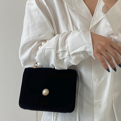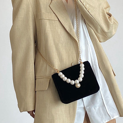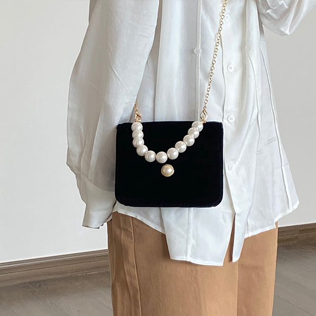Vintage Pearl Velvet Chain Messenger Bag