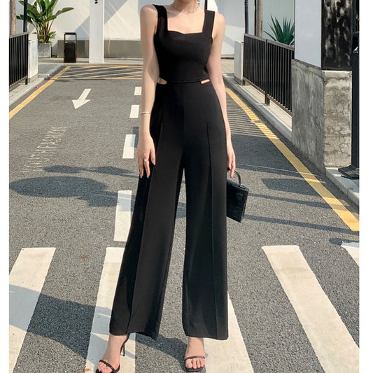 Em promoçãoHollow High-Waisted Wide-Leg Suspender Jumpsuit