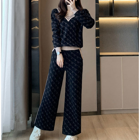 Em promoçãoLetter V-Neck Sweater Knitted Straight Pants Set