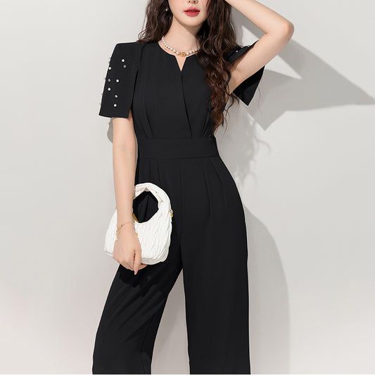 Fashionable Diamond Short-Sleeved Jumpsuit