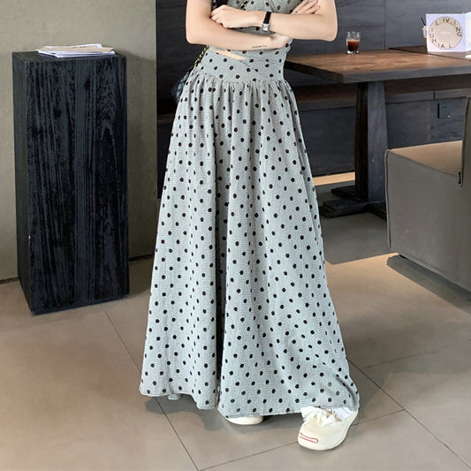 Polka Dot Puff Sleeve V-Neck Top Lace-Up Skirt Set