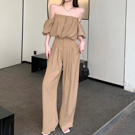 Puff Sleeve Off-Shoulder Top Suit Wide-Leg Trousers Set