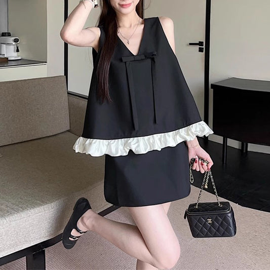 Bowknot Vest Summer High Waist Skirt Two Piece Suit