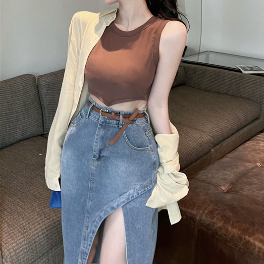 Short Tank Top Long-Sleeved Shirt Denim Skirt