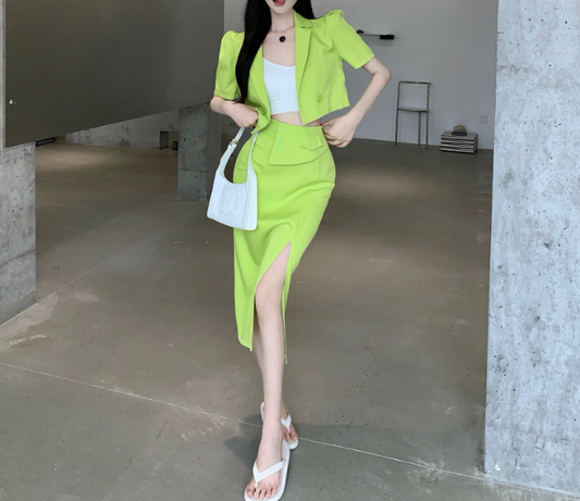 Summer Suit With Blazer And High-Waisted Slit Skirt