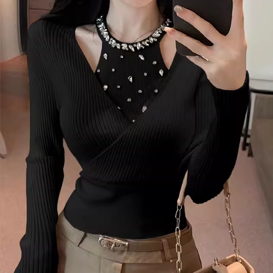 V-Neck Knitted Cardigan Single-Breasted Long-Sleeved Top