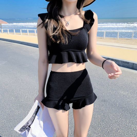 Split Lotus Leaf Edge Steel Support Gathered Bikini Swimsuit