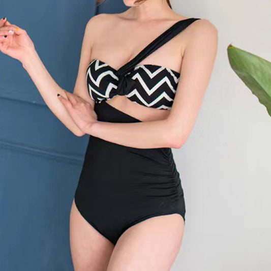 Steel Support Chest Gathered One-Piece Triangle Swimsuit