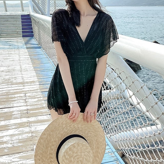 Swimsuit Gathered Hollowed Out Black Swimming Holiday