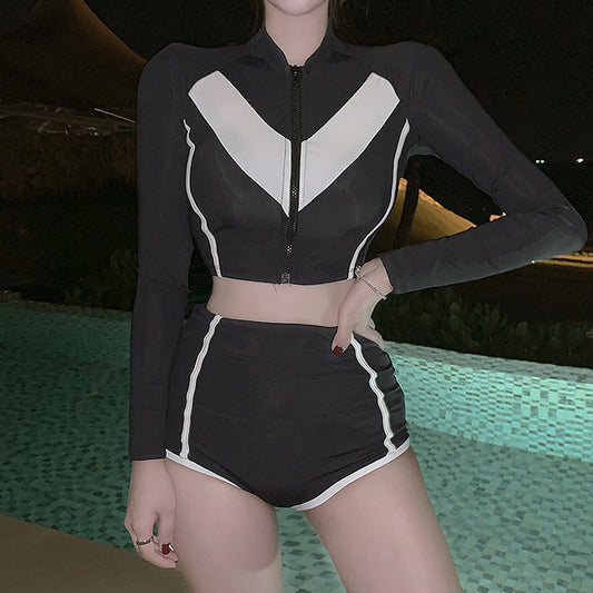 Sports Style Long Sleeve Split Swimsuit