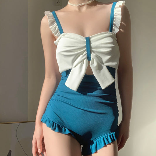 Bow Sleeveless Skinny Backless One-Piece Swimsuit