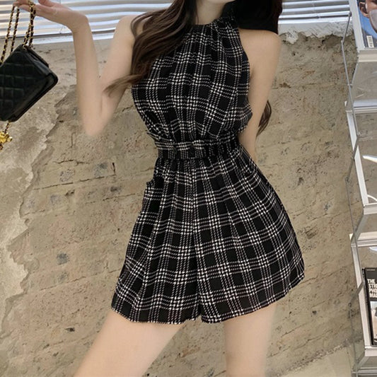 Plaid Casual High-Rise Jumpsuit Shorts Romper