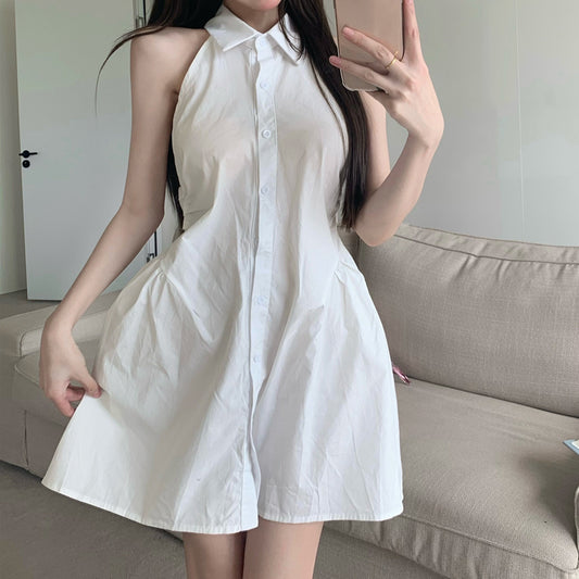 White Jacquard Improved Chinese Style Qipao Halter Neck Waist Dress