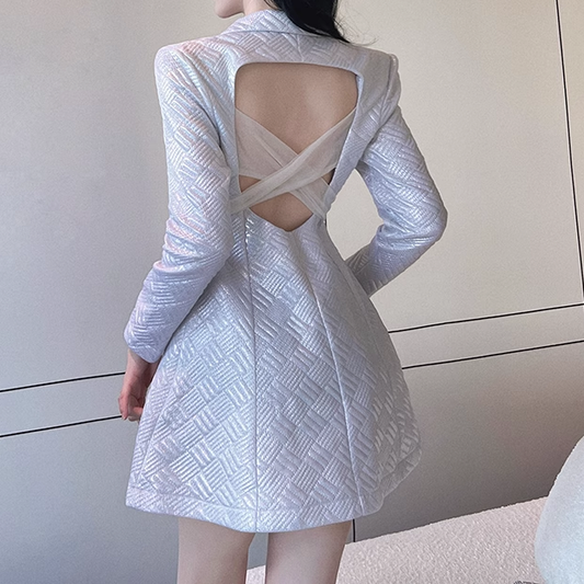 Backless Mesh Belt Long-Sleeved Suit Dress