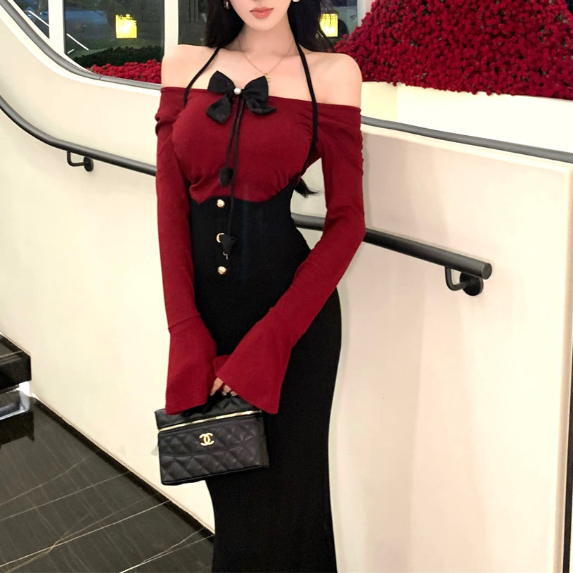 Stylish And Sexy Halter Neck Off-Shoulder Fishtail Skirt Set