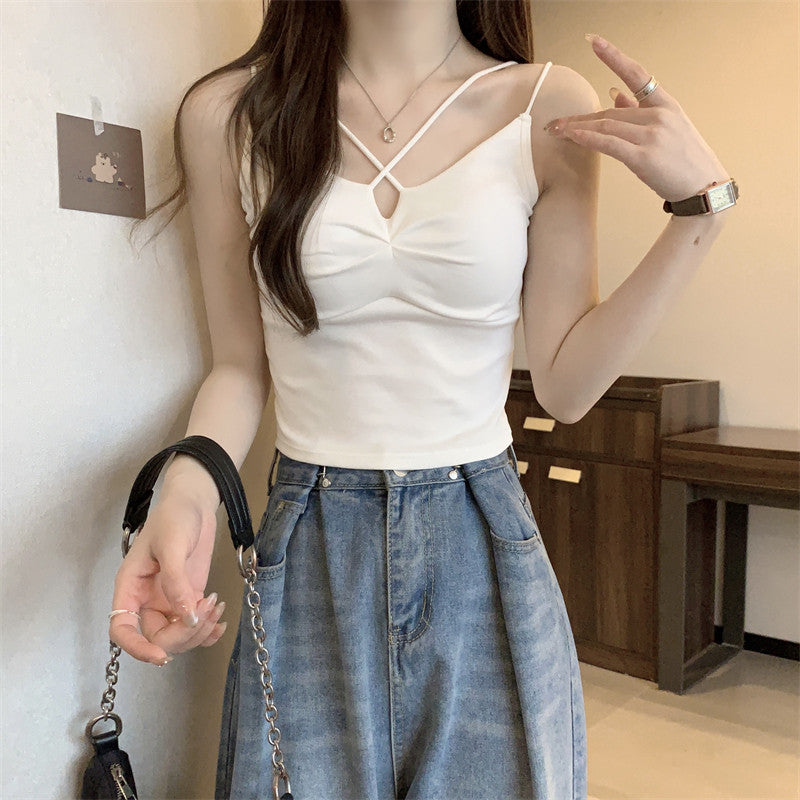 Stylish Short Sleeveless Top With Built-In Bra Pads